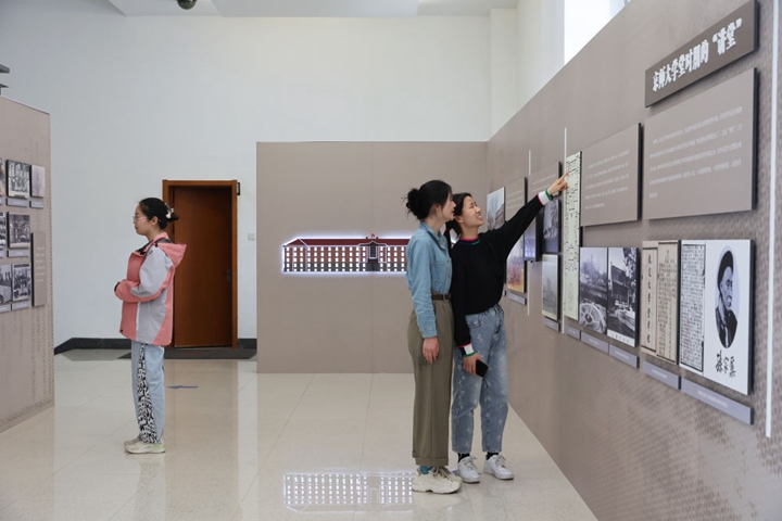 学生参观北京大学“大讲堂之路”展览(2024年3月16日摄)。新华社记者 王翔 摄