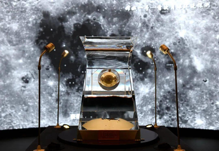 2023年4月,马克龙总统访华期间,中国向法国赠送1.5克科学用月球样品。目前,这份来自中国的珍贵礼物存放于法国国家自然历史博物馆。