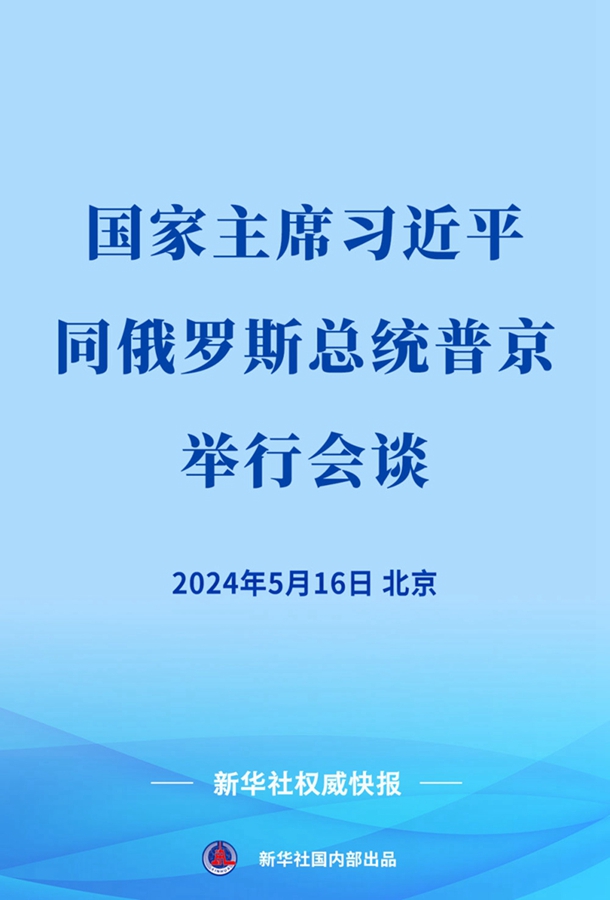 5月16日上午,国家主席习近平在北京人民大会堂同来华进行国事访问的俄罗斯总统普京举行会谈。