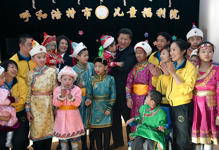 2014年1月28日,习近平来到呼和浩特市儿童福利院看望孩子们。新华社记者 庞兴雷 摄