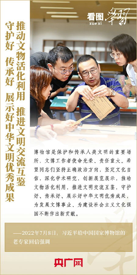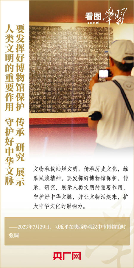 “一座博物馆就是一所大学校”“博物馆很重要,我从小就爱看博物馆,小时候北京的博物馆我差不多都看过了”“博物馆建设要更完善、更成体系,同时发挥好博物馆的教育功能”……在国内考察中,习近平总书记曾经多次走进当地博物馆,了解馆藏文物的收藏、保护、研究情况,对博物馆建设和利用作出重要指示。一起来学习!