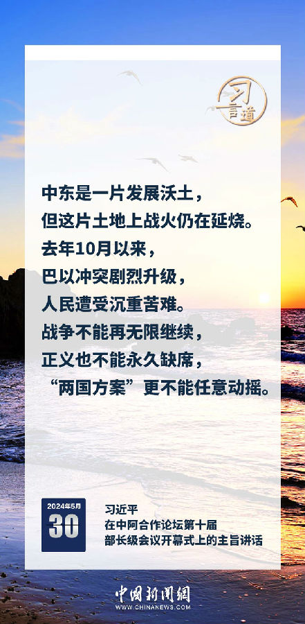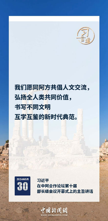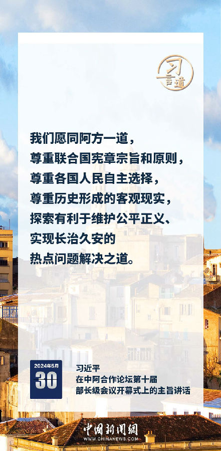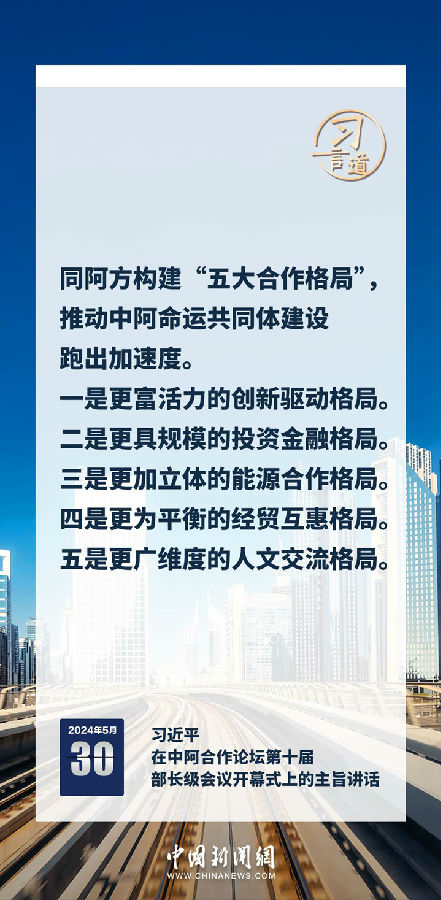 5月30日上午,国家主席习近平在北京钓鱼台国宾馆出席中阿合作论坛第十届部长级会议开幕式并发表主旨讲话。习近平指出——