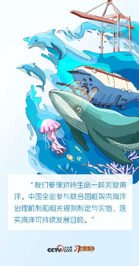 2019年4月,习近平主席在集体会见出席海军成立70周年多国海军活动外方代表团团长时指出,“我们要像对待生命一样关爱海洋”,“为子孙后代留下一片碧海蓝天”。
