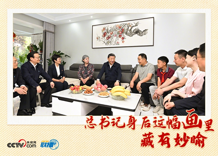 联播+ 6月19日下午,习近平总书记来到宁夏银川市金凤区长城花园社区考察。在总书记看望的社区居民赵守成家里,客厅墙上挂着的一幅水墨画格外显眼。画中,火红的石榴结满枝头,呈现出一幅丰收景象。