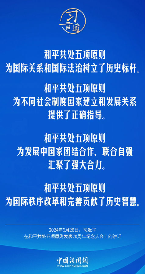 6月28日,国家主席习近平在北京人民大会堂出席和平共处五项原则发表70周年纪念大会并发表重要讲话。习近平指出——