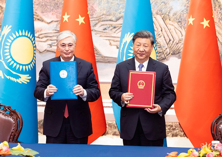 “中国和哈萨克斯坦是好邻居、好朋友、好伙伴,两国人民有着数千年的友好交往史,共同谱写了古丝绸之路文明交流互鉴的美好诗篇。”