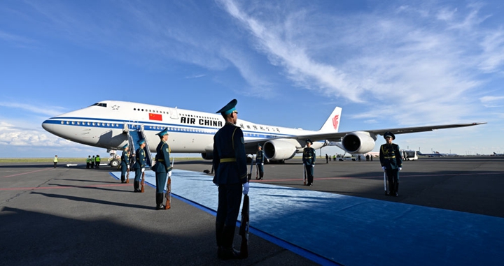 当地时间7月4日晚,国家主席习近平乘专机抵达杜尚别,应塔吉克斯坦共和国总统拉赫蒙邀请,对塔吉克斯坦进行国事访问。