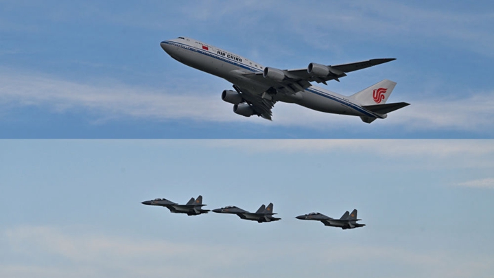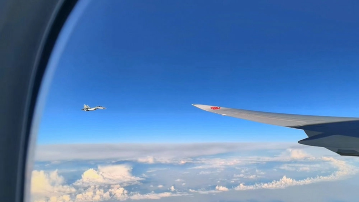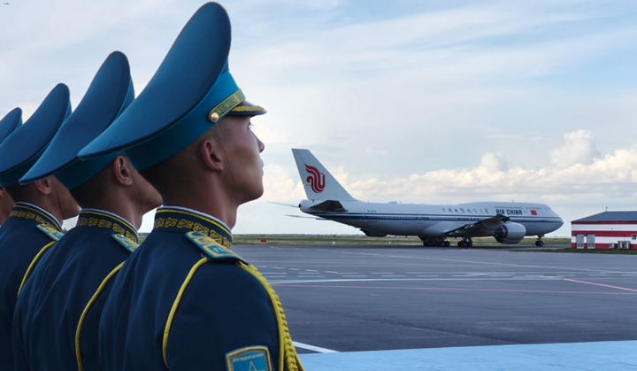 习近平专机起飞后,哈萨克斯坦三架空军战机升空护航。