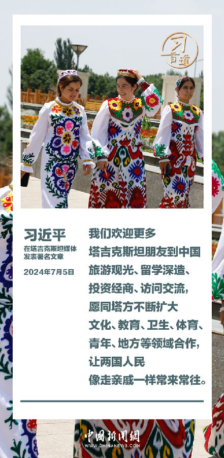 7月5日,在对塔吉克斯坦进行国事访问之际,国家主席习近平在塔吉克斯坦《人民报》和“霍瓦尔”国家通讯社发表题为《共创中塔关系美好明天》的署名文章。习近平指出——