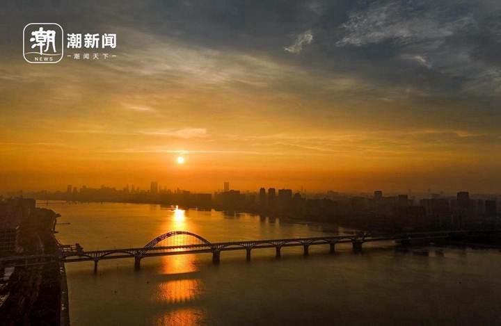 杭州钱塘江畔,一轮红日喷薄而出,映红了江面 记者 董旭明 摄