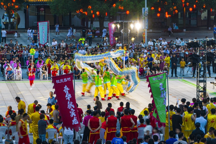 宁波市镇海区九龙湖镇,当地居民自发组成的14支舞龙队同台竞技 省农业农村厅供图