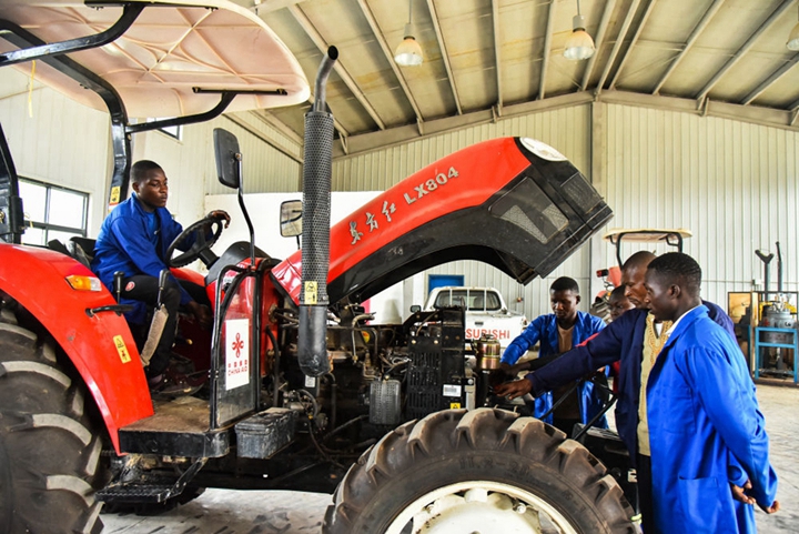 2023年1月12日,学生在喀麦隆亚巴西农业职业技术中学上拖拉机实践课。亚巴西农业职业技术中学由中方援建,是喀麦隆第一所农业技术学校。新华社发(科普索摄)