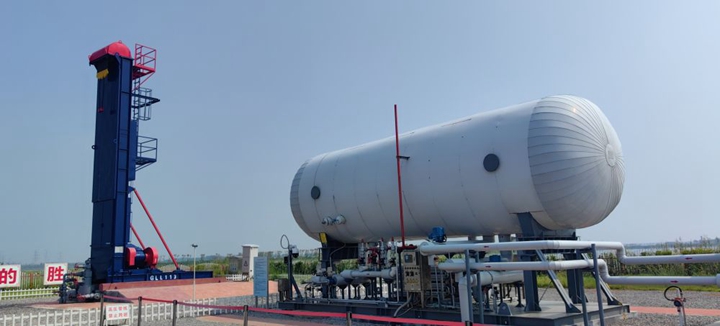 “这是CCUS项目专用储气罐,可储存100吨二氧化碳。”胜利油田莱113区块站长范少伟说,CCUS指的是碳捕集、利用与封存技术,应用到石油开采领域,可实现石油增产和碳减排双赢,是化石能源低碳高效开发的新兴技术。