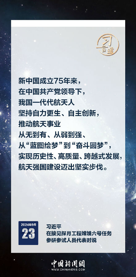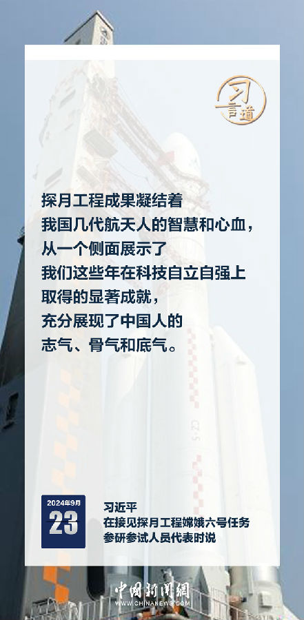 中共中央总书记、国家主席、中央军委主席习近平23日在人民大会堂接见探月工程嫦娥六号任务参研参试人员代表时发表重要讲话。习近平指出——