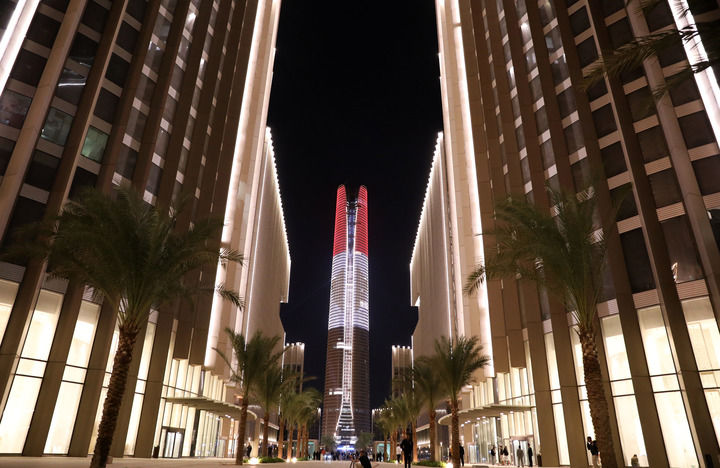 这是2024年10月21日拍摄的埃及新行政首都中央商务区夜景。新华社记者 王东震 摄