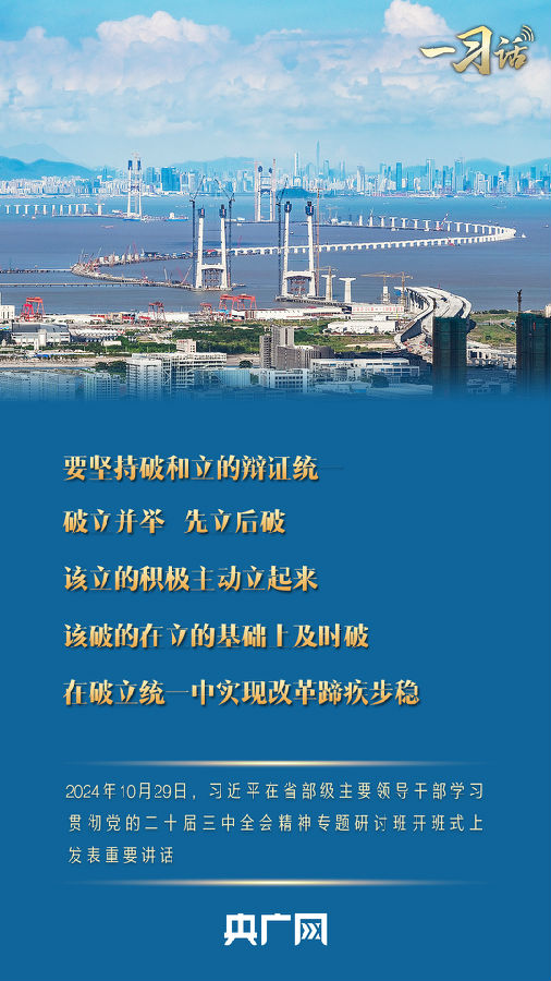 面对新征程上复杂艰巨的改革重任,我们既不能“只破不立”,简单粗暴地“一刀切”;又不能“未立先破”,平添矛盾风险,心急办了坏事;也不能“立而不破”,新旧并立让人无所适从。我们唯有秉持破立辩证统一的方法论,准确把握改革的战略重点,合理安排改革举措的先后顺序、节奏时机,增强改革取向的一致性,才能将改革不断推向深入,促进各方面工作高质量发展,真正把进一步全面深化改革的战略部署转化为推进中国式现代化的磅礴力量。