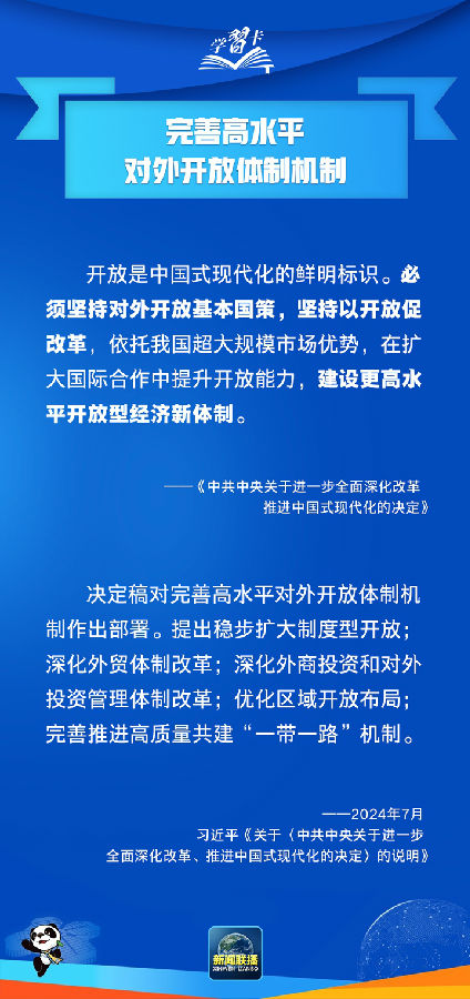 今年7月,党的二十届三中全会审议通过《中共中央关于进一步全面深化改革 推进中国式现代化的决定》。这份纲领性文件明确提出,“完善高水平对外开放体制机制”。