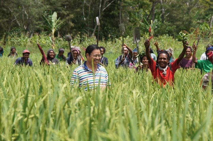 △ 2019年12月17日,首次参与中国援巴新旱稻项目的巴布亚新几内亚农户,看到自己种植的旱稻长势喜人。