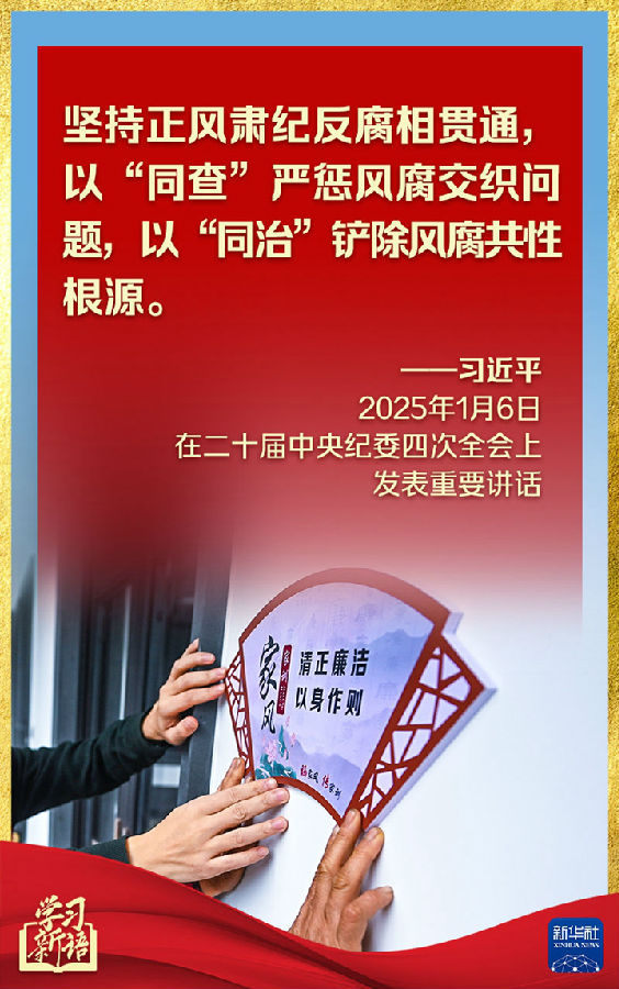 1月6日,习近平总书记在二十届中央纪委四次全会上发表重要讲话强调,坚持用改革精神和严的标准管党治党,坚决打好反腐败斗争攻坚战、持久战、总体战。一起学习领悟。