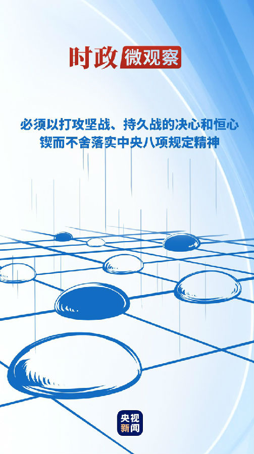 “这些年,八项规定确实是推动了根本性的变化,风气为之一新,过去积重难返的现象大部分没有了。”今年3月,习近平总书记在云贵考察时说,“同时要看到,有一些地方发生了松动,有一些方面还存在盲区死角,一些不良风气出现了反弹回潮。钉钉子嘛,再钉几下,久久为功,化风为俗。”