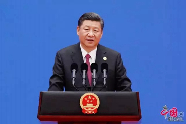 5月15日,习近平宣布“一带一路”国际合作高峰论坛圆桌峰会开始。新华社记者马占成 摄