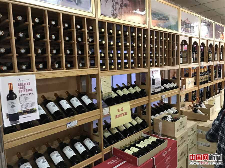 7月1日,“共舞长江经济带——探访长江经济带区域协同生态发展之路”网络主题活动采访团到达此次长江经济带采访的第二站四川成都双流区。图为自贸区内摩尔多瓦国家馆内各个种类的葡萄酒。中国网记者吴佳潼摄
