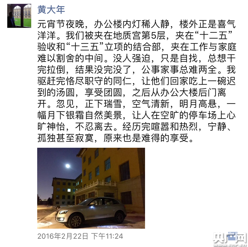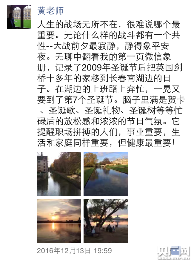 记者在采访过程中,偶然通过他周围人的手机,看到了黄大年的微信。他生前留下的一百多条朋友圈,定格了他在回国7年里的所思所想所感。日常的点点滴滴,是如何浓缩了他纯粹质朴的内心独白,折射着他的爱国情怀?经过当事人的许可,我们选取了部分朋友圈内容。