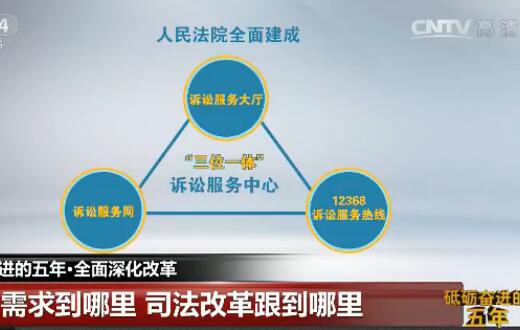 人民有所呼,改革有所应。人民法院全面建成诉讼服务大厅、诉讼服务网、12306诉讼服务热线“三位一体”的诉讼服务中心;探索建立电子法院、网络法院、跨域立案等新模式;大力推广巡回审判,六个巡回法庭将最高法开刀了民众家门口,打通服务群众“最后一公里”。