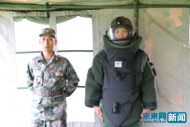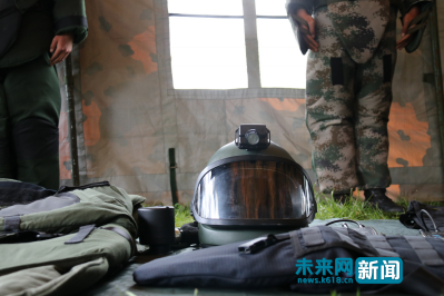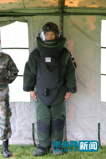 在这里,未来网记者看到多种类地震救援设备,以及排爆工兵作业时所用的装备。其中,排爆服引起采访团的格外关注。这是一套由头盔,面罩,上衣,防护板等组成的服装。能有效对作业人员进行防护。