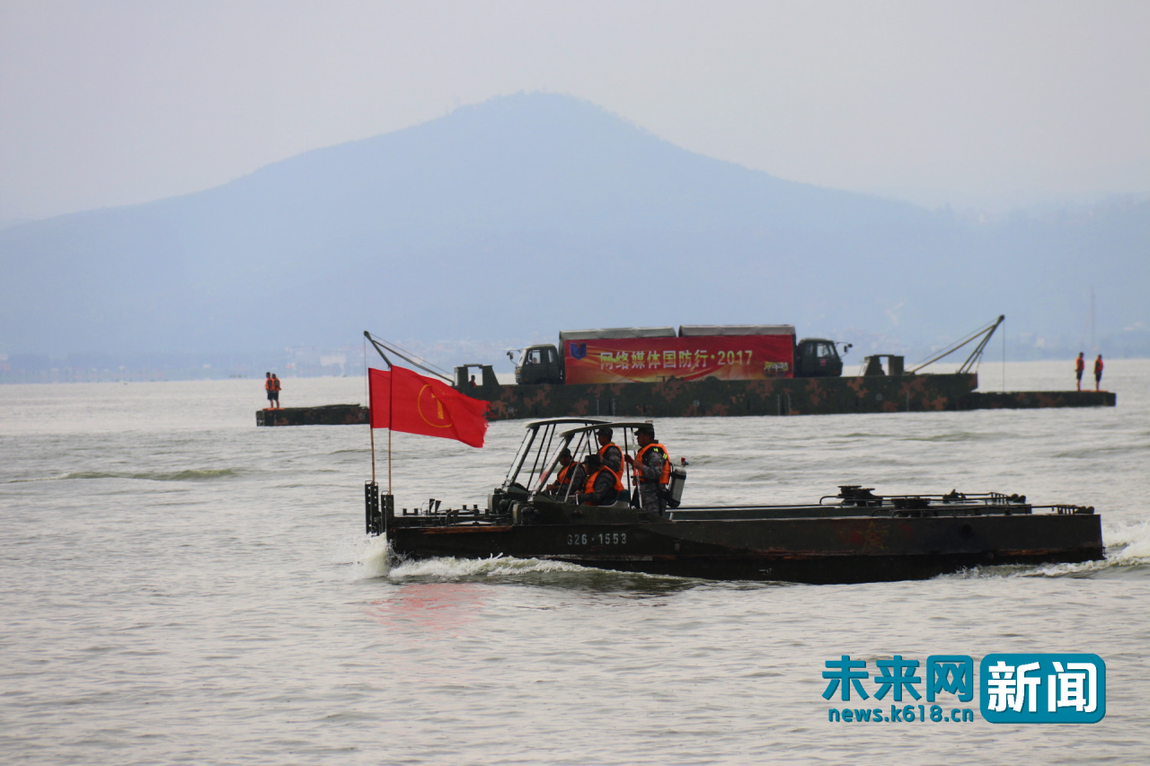 23日,“同心共筑强军梦”网络媒体国防行采访团来到陆军75集团军某旅,观看舟桥部队演练。