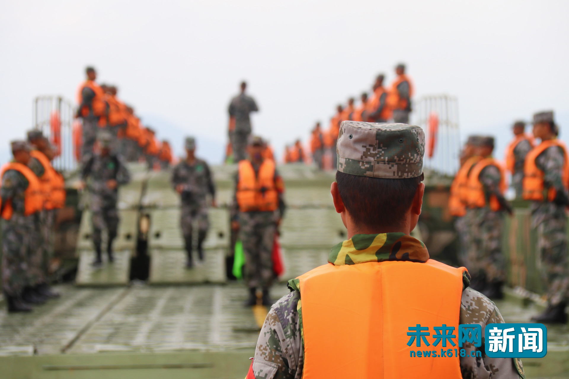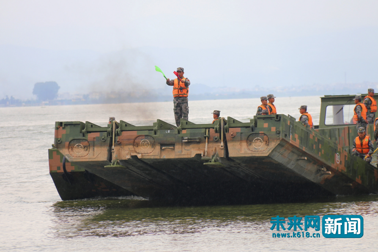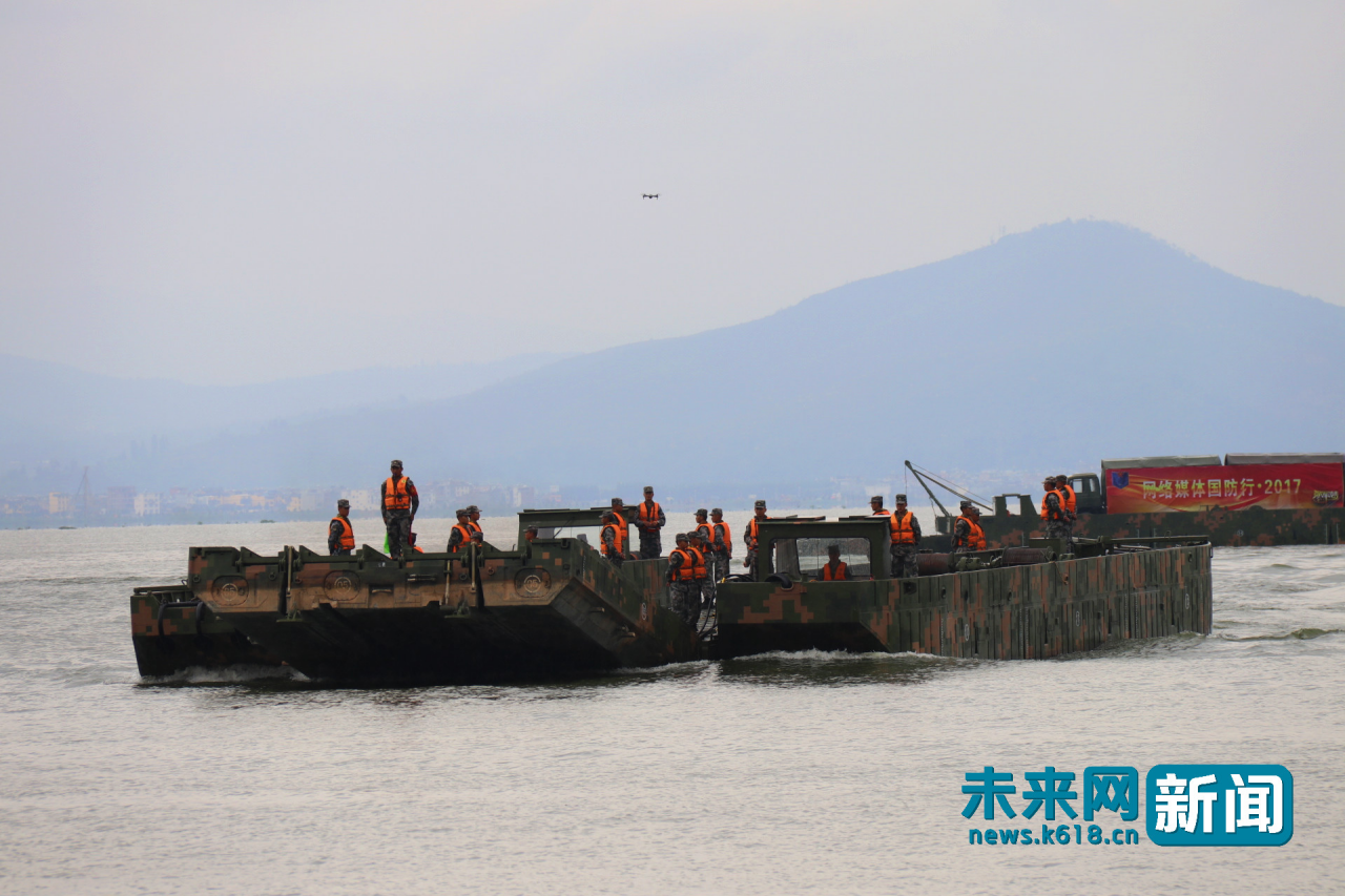 未来网(www.k618.cn)7月24日电(记者 巩帅)“同心共筑强军梦”网络媒体国防行采访团来到陆军75集团军某旅,观看舟桥部队演练。
