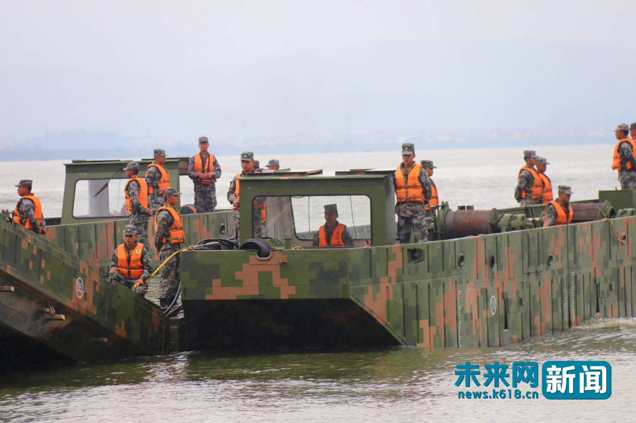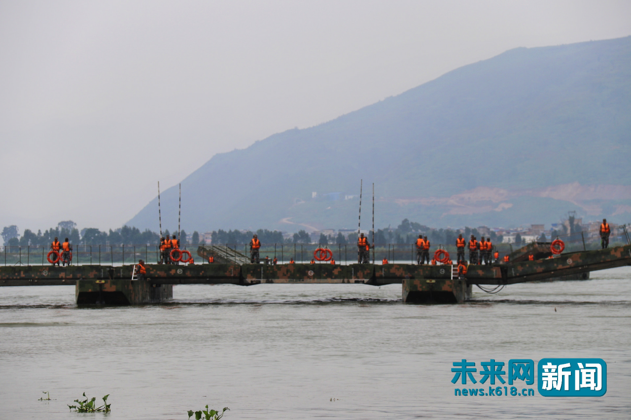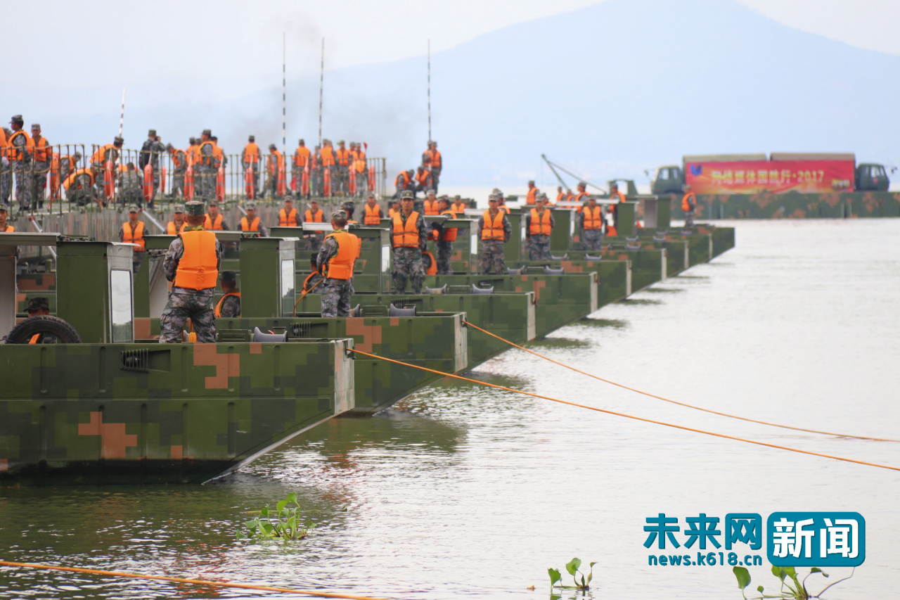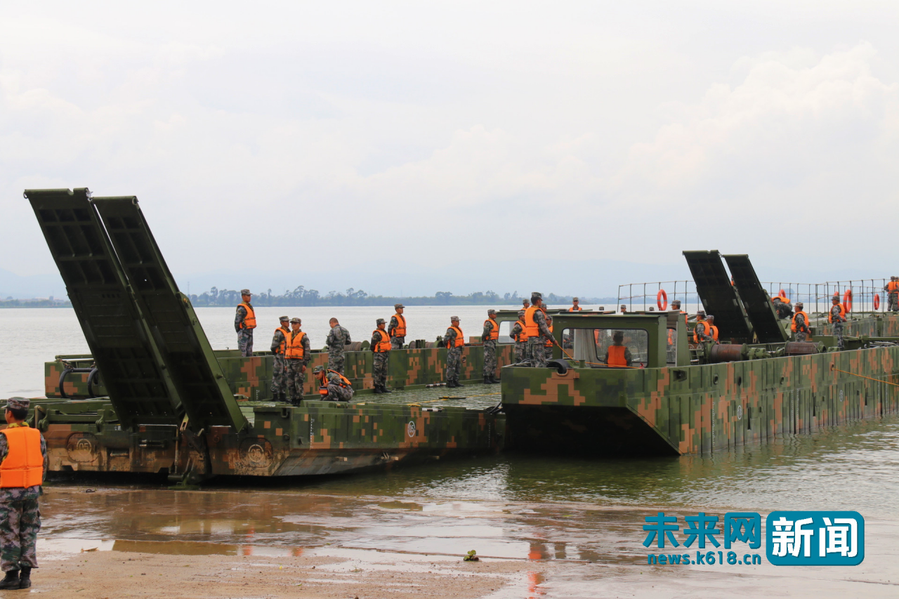 未来网(www.k618.cn)7月24日电(记者 巩帅)“同心共筑强军梦”网络媒体国防行采访团来到陆军75集团军某旅,观看舟桥部队演练。