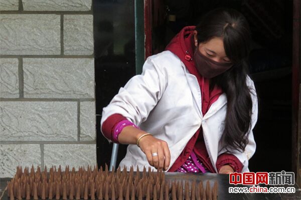村民宗吉正在制作手工塔香。中国网记者 金慧慧 摄