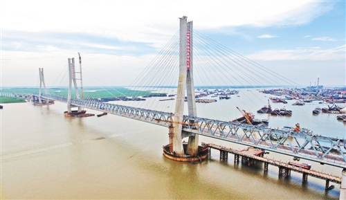 8月16日,由中铁大桥院设计、中铁大桥局施工的蒙西至华中铁路控制性工程洞庭湖大桥主桥主体完工。 (新华社发)