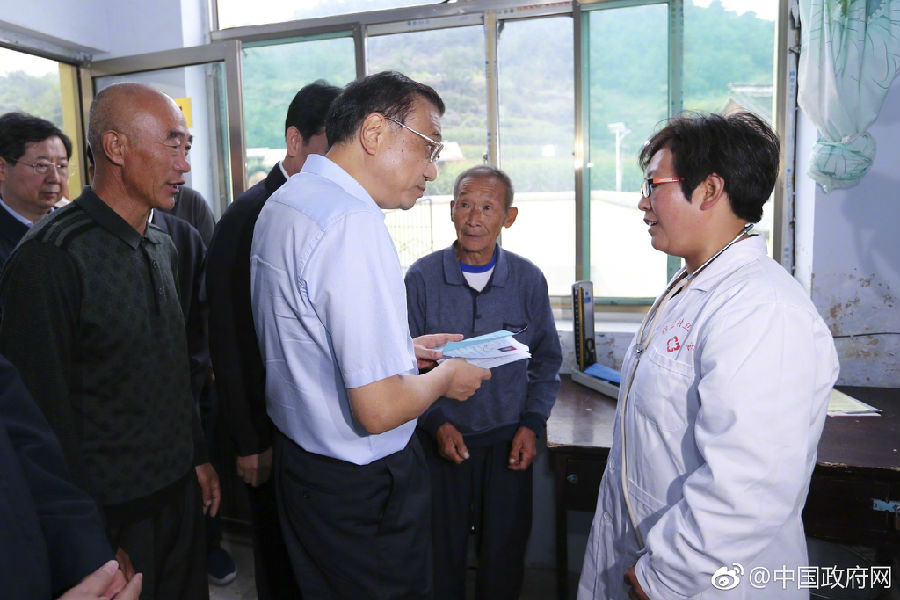 李克强4日来到山西长治壶关县五龙山乡程庄村卫生室。了解到村民不仅可以在家门口看病,还可以通过医联体较过去更便捷地得到优质医疗的服务,总理说,我们不但要破解村民的看病难,还要防止村民因病致贫和因病返贫。村医要站好守护村民健康的第一道岗。