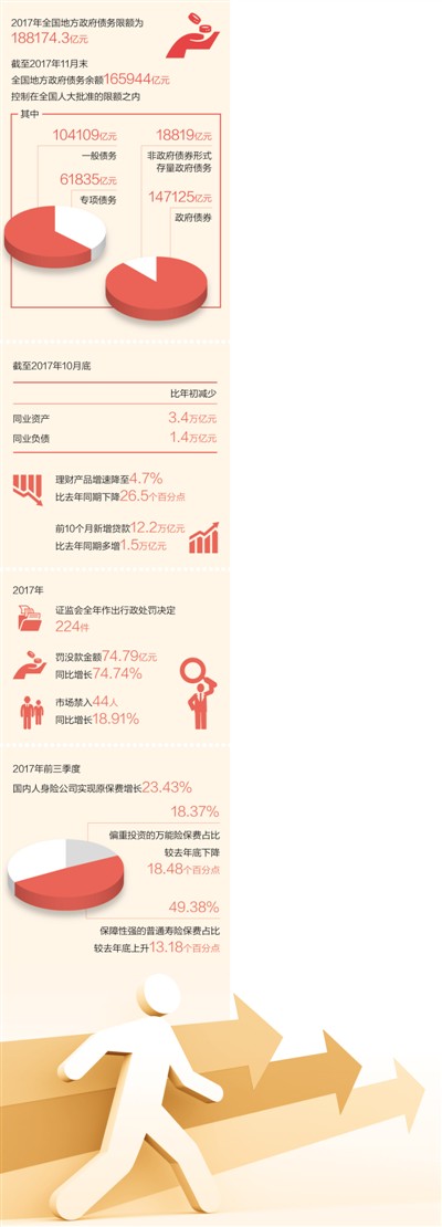 防风险大幕开启于2017年。这一年,监管部门专项整治市场乱象,弥补制度短板,引导金融机构回归本源,专注主业,增强服务实体经济能力。2018年金融防风险将在哪些重点领域出手?投资者和企业等市场主体如何看待防风险?怎样建立防风险的长效机制,从根源上遏制风险产生的苗头?我们从银行业、资本市场、保险业和地方融资平台四个领域,聚焦2017年防风险的主要成效,反映企业、投资者、金融机构的实际感受和来年期盼,共同探讨构筑今年金融业防风险屏障的有效路径。