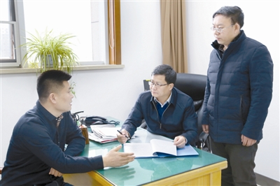 图为周跃武(中)与室里同志在讨论研究案件。高小军 摄