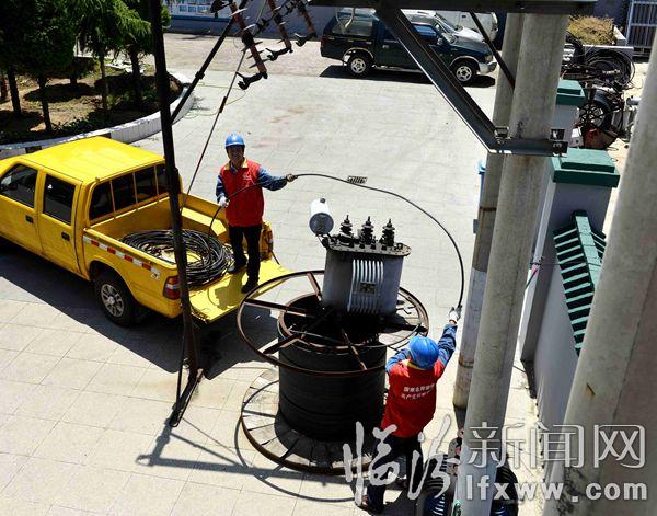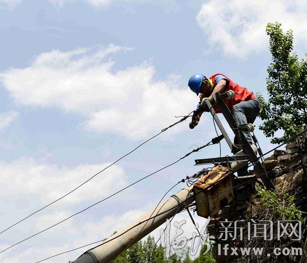 次日天一亮,北平供电所服务队就组织开工抢修。为抢时间,在保证安全的前提下,北平供电所抢修队一班人顶着饥饿,井然有序的排杆、拆卸、组装、放线、安装等,施工程序一道接着一道,一道连着一道,在最短的时间内抢修完毕,恢复供电。 (张天杰 师海红)