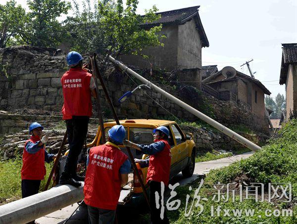 临汾新闻网讯 6月19日,古县供电公司北平供电所共产党员服务队奋战在黄家窑台区抢修供电设施。