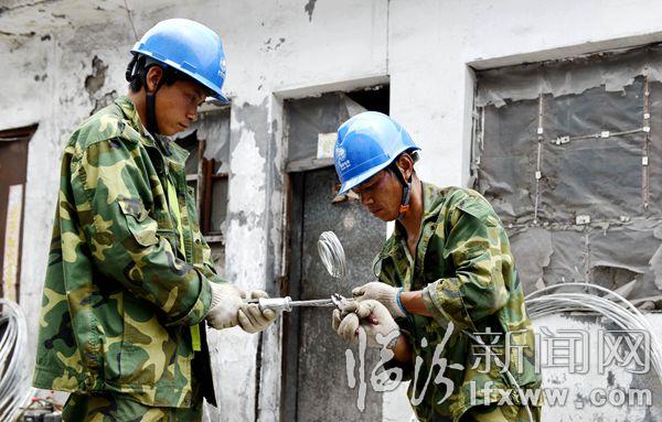 该工程新建杆塔29基,全线2.4公里,攀沿在山区灌木丛林中,给施工带来很大难度,但供电人起早贪黑,冒着酷暑,分工明确,责任到人,按时节点安排每天进度,积极行动迎战夏峰,严把现场安全,将安全措施执行到位,在炎炎烈日下守护光明。( 张天杰)