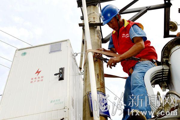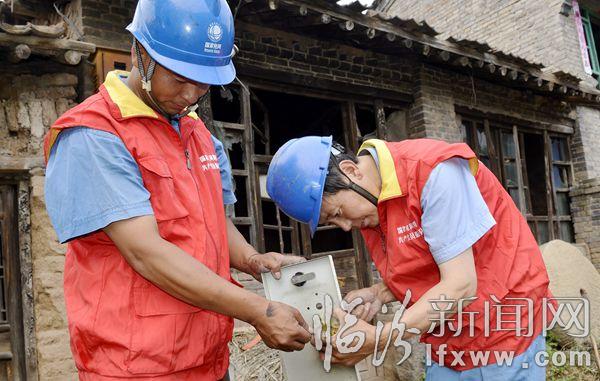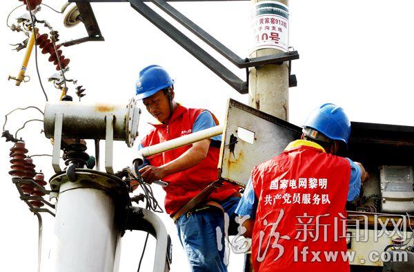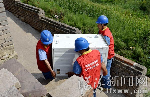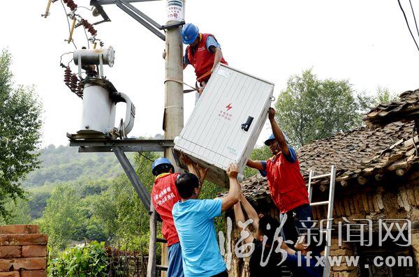 临汾新闻网讯 8月4日,古县供电公司北平供电所共产党员服务队在10KV874黄家窑线窑子沟支线10号杆变台更换配电柜。