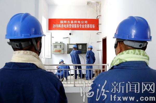 临汾新闻网讯 6月28日至29日,国网古县供电公司举办了2016年供电所岗位知识技能竞赛,来自公司7个所35名选手参加了竞赛。竞赛分理论知识考试、营销服务、配网运检等专业进行,旨在通过低压接户线及三相智能表计量装置安装、低压绝缘线架空线路架设及拉线安装等锻炼,打造一支技术过硬、作风优良、素质精良的供电员工,为迎峰度夏、防汛应急提供可靠的安全供电保证。
