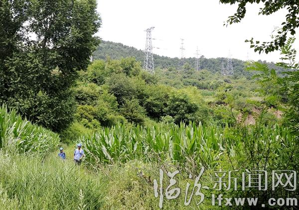 在输电线路通道排查中,供电员工翻山越岭、穿越沟壑、出入灌木,顶着酷暑,用脚丈量这片沃土,掌握线路运行第一手资料,有效提升古县电网的安全运行水平。