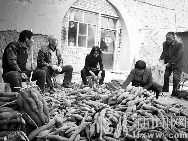 临汾新闻网讯 近年来,在县委、县政府和乡政府的大力支持下,古县岳阳镇九倾垣村积极调整农业产业结构,因地制宜,发展玉米、黄豆和红薯等经济作物促农增收,成立了古县久富源专业合作社,该村以合作社为依托,试种富硒红薯50亩,并在10月底通过富硒认证,带动村民100余户致富增收,每亩比原来可增收1000余元。图为该村农民们在整装收获的富硒红薯。
