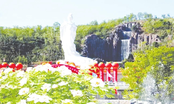 汉白玉牡丹仙子像位于南山飞瀑下方,高39米,采用北京房山一级汉白玉塑成,与北京故宫的汉白玉同出一山,仙子像整体洁白细腻,晶莹典雅,富贵端庄,是目前国内最高的汉白玉塑像,牡丹壁和仙子像曾荣获吉尼斯世界纪录。张家大院的修复开放为牡丹景区增添了浓墨重彩的一笔。下院古色古香的城堡式大门上灯笼高挂,一个个院落依山而建,属于明清时期民居建筑风格,一个个居室里陈列着过去的生活用品,仿真人物刻画逼真,惟妙惟肖。