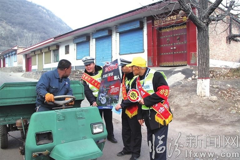 临汾新闻网讯 日前,为增强农村群众交通安全意识,充分发挥农村交通安全劝导站的作用,古县公安局交警大队走进辖区辛庄村开展“122”全国交通安全日进农村宣传活动。依托辛庄村农村劝导站,主要针对农村面包车、摩托车车主、驾驶人进行一次面对面、点对点的宣传教育,向广大村民、司机和劝导员宣传“122”交通安全日和交通安全出行知识,倡导文明行车,安全行车,抵制交通违法驾驶行为。(孟繁霞 摄)