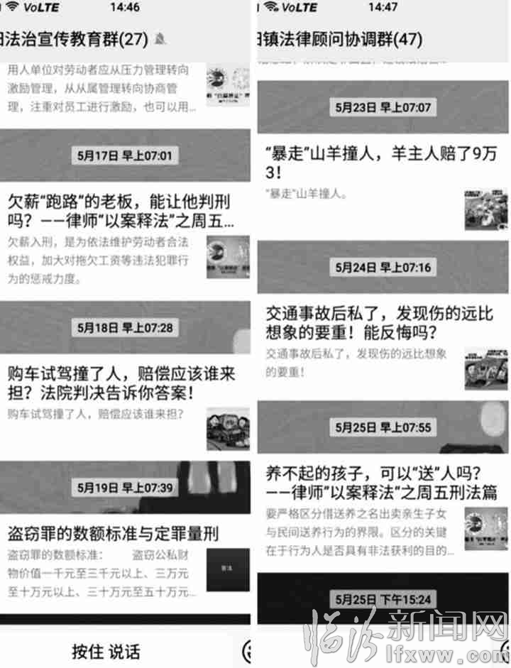 建立了村干部和安置帮教人员微信群,每天为群众推送常用法律法规、以案释法案例、职业技能培训信息、就业信息,解答法律咨询等。今年上半年,累计推送法律知识等400余条,累计解答咨询20余次,为安置帮教人员推送就业信息、职业技能培训信息50余次。