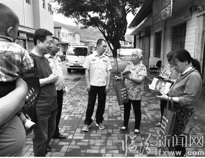 图为工作人员上街入户宣传。