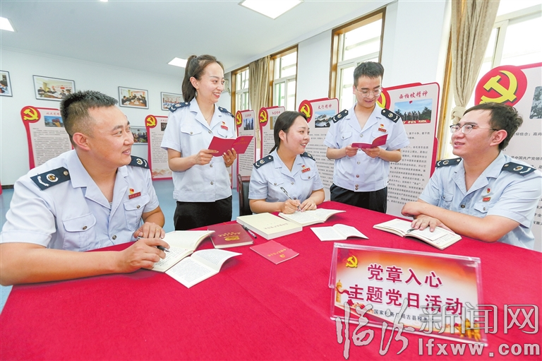 临汾新闻网讯 连日来,国家税务总局古县税务局开展了“党章入心”主题党日庆“七一”活动,全局各党支部通过重温入党誓词,集体学习党章内容,同时结合自身实践,严格按照党章的标准要求自己、约束自己,立足本职工作,为税收事业贡献自己的力量。