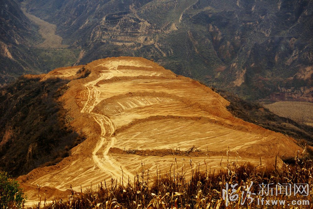 近年来,隰县按照“以梨为基、多元发展”的总体思路,以“一县一业”为主攻方向,确定了“主攻玉露香、率先达小康”的奋斗目标,长抓“四配套”(果水配套、果肥配套、果与林下经济配套、果与科技配套),短抓“六环节”(栽、接、管、防、储、销),今年秋季又新栽4万亩。图为栽植“玉露香”平田整地工地。